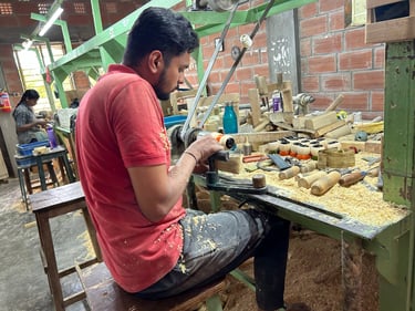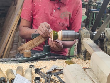 Our founder, Amit, was visiting the Channapatna Crafts Park with his wife and their young daughter. As they walked from one manufacturing facility to another, they were mesmerized how skillfully wood is turned and shaped, to make different toys. They saw a group of school children on school exhibition. The excitement in there eyes were palpable, their hands were reaching out to touch the beautifully painted wooden toys. The children were fascinated not just by the toys, but by watching skilled artisans shape, color, and bring them to life.